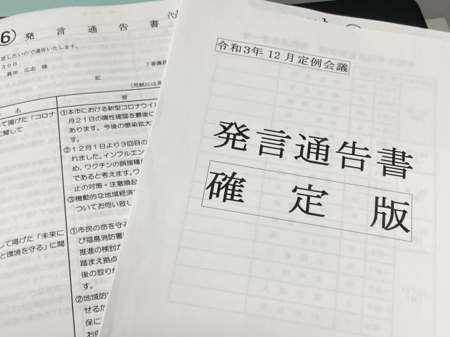 福島駅東口再開発事業、子ども子育て、教育問題、新型コロナウイルス感染症対策等取り組むべき諸課題をあらためて確認し、課題解決に向けて着実に進めてまいります。