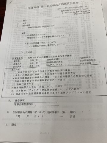 福島支部の第10回政策委員会が、25日(火)午後1時半より福島事務所にて開催。